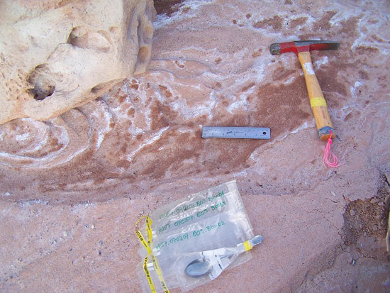 sample sites, documented them using Sklar FDM (Field Documentation Methodology) and performed regolith-landform characterization. Samples of rocks, minerals, and soil were collected for analysis. It was found that sites of microbial colonization can be recognized on a macroscopic level in the field, within specific geologic units; therefore the microbial/regolith-landform mapping could be continued at an accelerated rate through remote sensing data and field observations alone. |