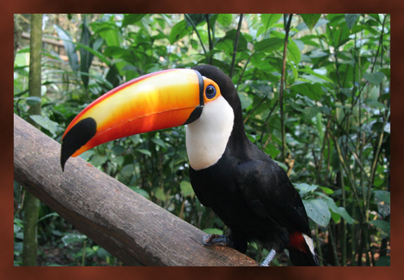 colorful toucans, macaws, parrots, humming birds, flamingos, and butterflies that we