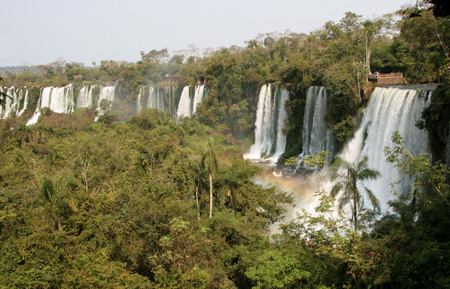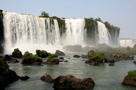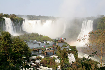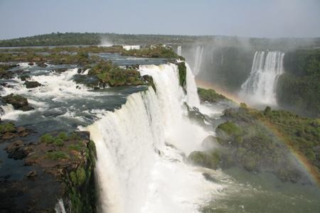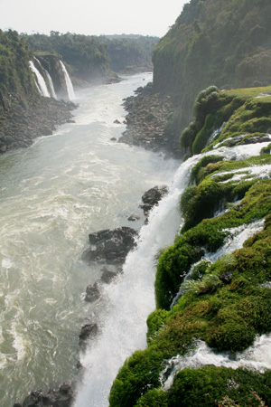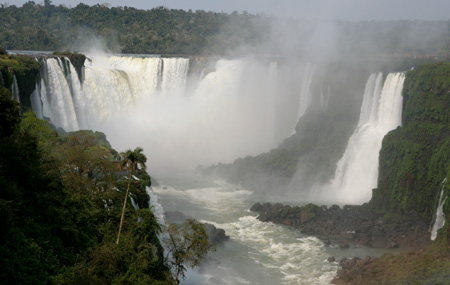 Brazil, Argentina, and Paraguay where the massive Iguaçu River crashes down 260 feet in