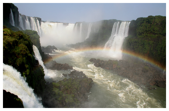 a grand collection of 275 individual waterfalls cascading over rock and through jungle.