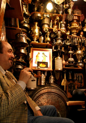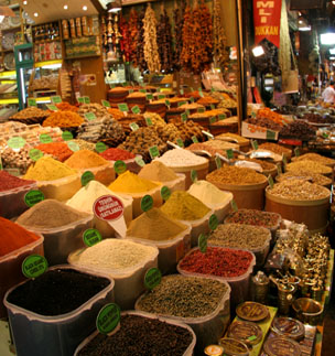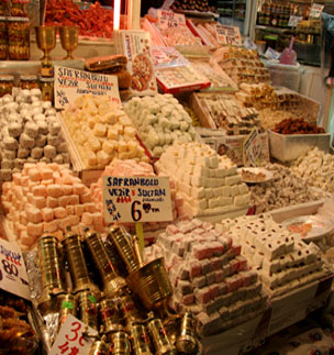 Shop after shop with mounds of ground spices, dried spices hanging from the ceiling, bins of tea, piles of nuts and snacks, every flavor of Turkish delight imaginable, and racks of fresh baklava. With the çay flowing like water, I spent a lot of time there trying a little of this and a little of that! Oh yah, I may be changing professions. I picked up some good saffron in the bazaar and upon returning home I found that it sells for 10 times as much back here in the States, wow! It was also a bit surreal seeing the mounds of lower quality saffron in piles out with the rest of the spices, some spilling onto the ground. |