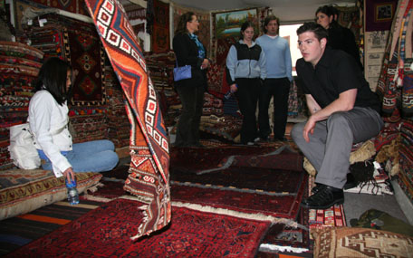 The next day we all ventured out into the huge city of Ankara visiting the tomb of Mustafa Kemal Atatürk, the recent founder of modern Turkey. It is surprising how much the Turks revere him and it goes so far that in his museum they have his rowing machine, cigarette holders, and even his dog stuffed on display... Then came the carpet shop. Dan has a passion for carpets and shared it with us at his friend Amet’s carpet shop up in the old city of Ankara inside the castle walls. By the end of the trip I had visited many carpet shops and gazed in wonder, while drinking çay or apple tea, at carpet upon carpet that were pulled off of stacks, out of corners, or behind closed doors to be rolled out before my amazed eyes – I found it to be an beautiful art, and I wish I could have brought back more. |