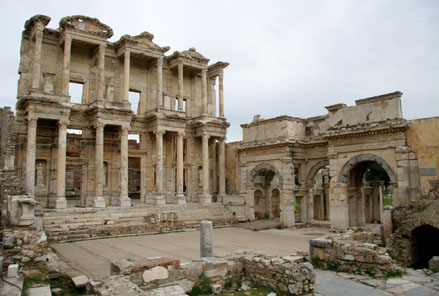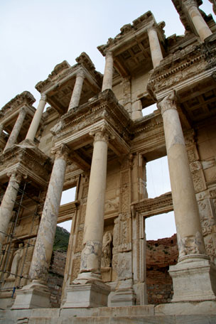 and to my pleasure found myself exploring the entire city with just two other early risers for a good hour until the tour busses showed up with hundreds of tourists. Tucked in the valley of a few mountains, it was not hard to imagine the port city in its full glory that the well worn marble road stones spoke of – complete with ruts from chariot traffic. The Ephesus Museum also had some interesting finds from the city’s excavation including some well preserved sculptures, a sundial, and a detailed exhibit on actual specific gladiators. |