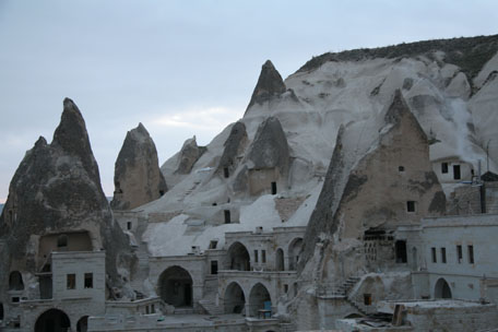 was also cut right out of the cliff side, but luckily the piped in water for the bathroom and routed electricity to make a very cozy cave with a great view overlooking the modern hybrid – half cave, half modern city of Göreme including cave hotels, restaurants, and clubs. One night I went to a cave restaurant for a night of Turkish dancing and music. It was neat to see all the different styles and costumes including whirling dervishes, circle dancing, fire dancing, belly dancing, and others. Some seemedto have a bit of Russian influence. |