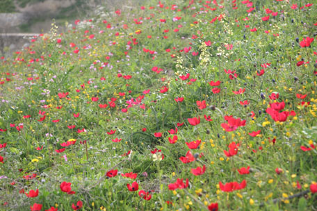 sprawled the quiet ruins of Hierapolis amid fields of poppies and other vibrant flowers welcoming the coming of spring. The temples, churches, necropolis, and especially the theater were worth the hike (welcome exercise after all the driving and touring). The theater was one of the largest and best preserved I have seen with a mostly complete stage and a fully complete view of the surrounding valley and mountains. |