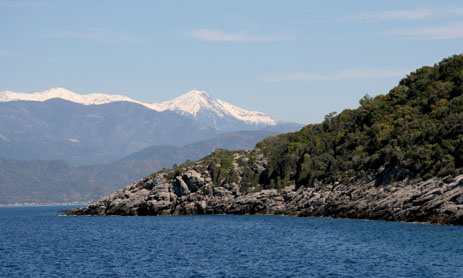 above the river, I pushed off down the line. I wound down the Mediterranean coast stopping every once in a while to enjoy the view or hike around. It was much like California’s HW1 but with many more goats. I ended up in the beautiful harbor city of Fethie. |